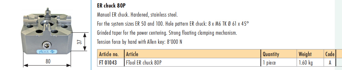 FT 01043-EDM ER chuck 80P FTOOL EDM ,tooling holder chuck China manufacturer