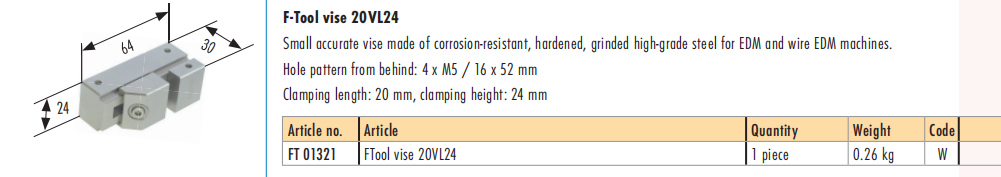 FT 01321 F-Tool vise 20VL24 FTOOL WEDM,tooling holder chuck China manufacturer