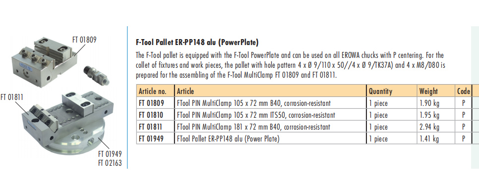 FT 01809-EDM F-Tool Pallet ER-PP148 alu (PowerPlate) FTOOL EDM,tooling holder chuck China manufacturer