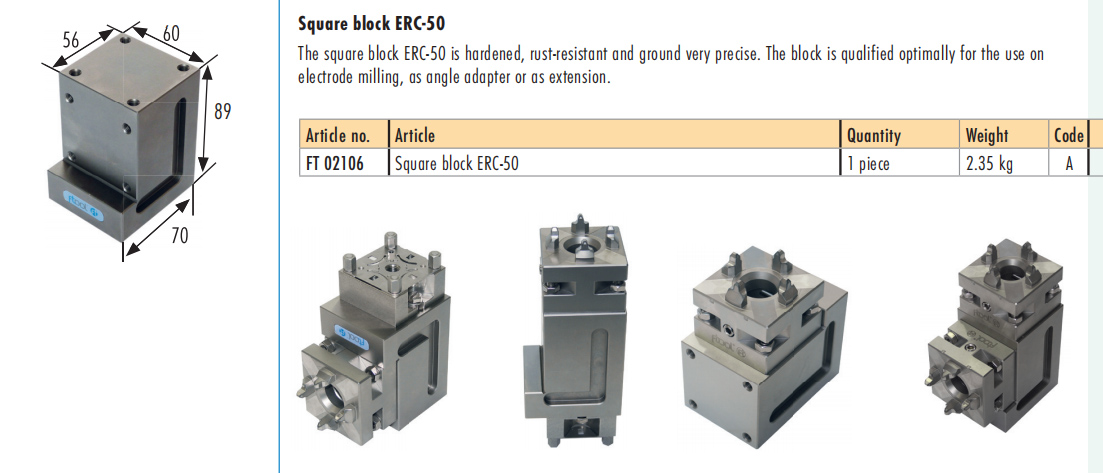 FT 02106 Square block ERC-50 FTOOL EDM ,tooling holder chuck China manufacturer