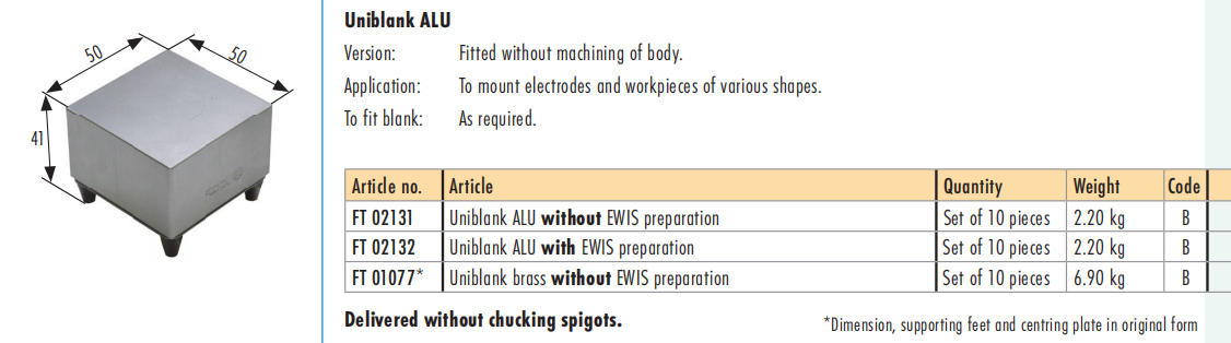 FT 02131 Uniblank ALU FTOOL EDM ,tooling holder chuck China manufacturer