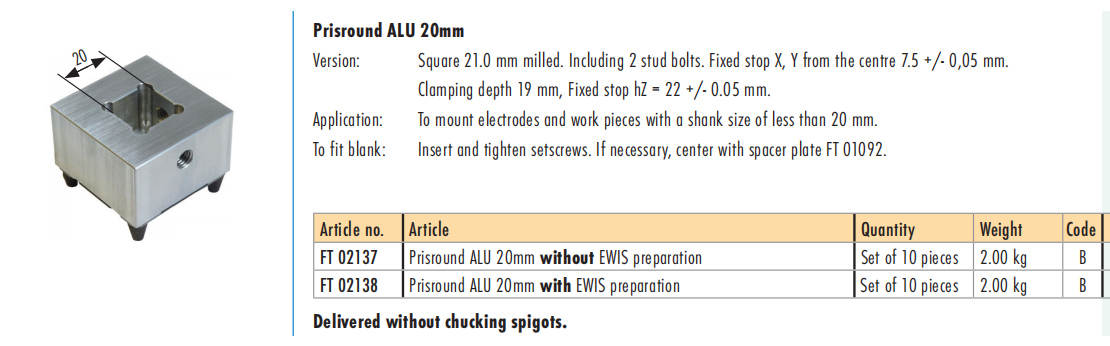 FT 02137 Prisround ALU 20mm FTOOL EDM ,tooling holder chuck China manufacturer