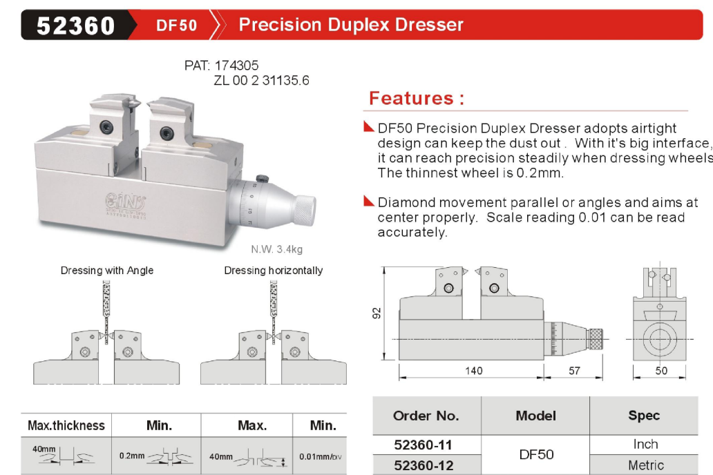 GinChan-52360 DF50 Precision Duplex Dresser,China manufacturer
