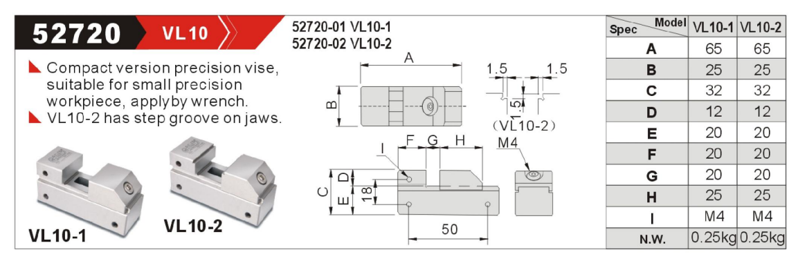 GinChan-52720 VL10 Stainless Tool Maker Vise,China manufacturer