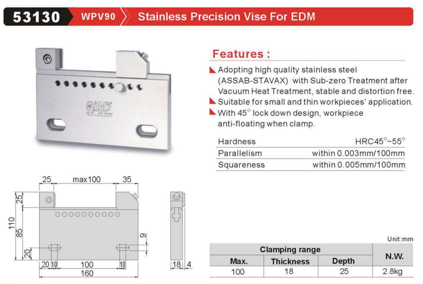 GinChan-53130 WPV90 Stainless Precision Vise For EDM,China manufacturer