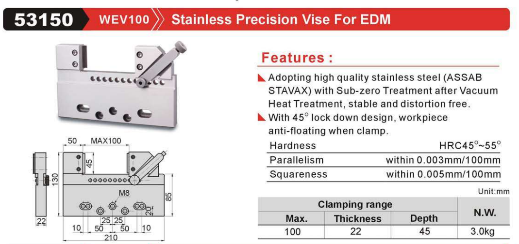 GinChan-53150 WEV100 Stainless Precision Vise For EDM,China manufacturer