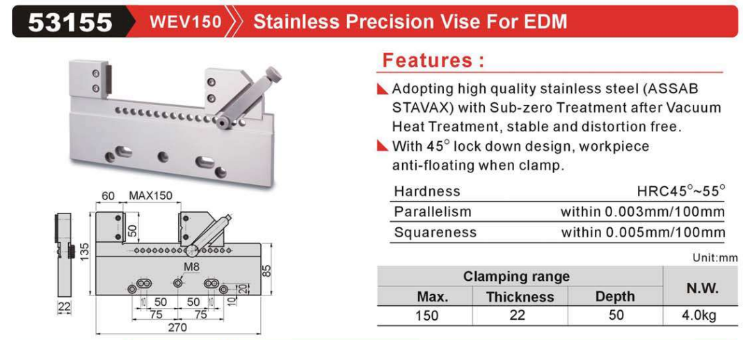 GinChan-53155 WEV150 Stainless Precision Vise For EDM,China manufacturer