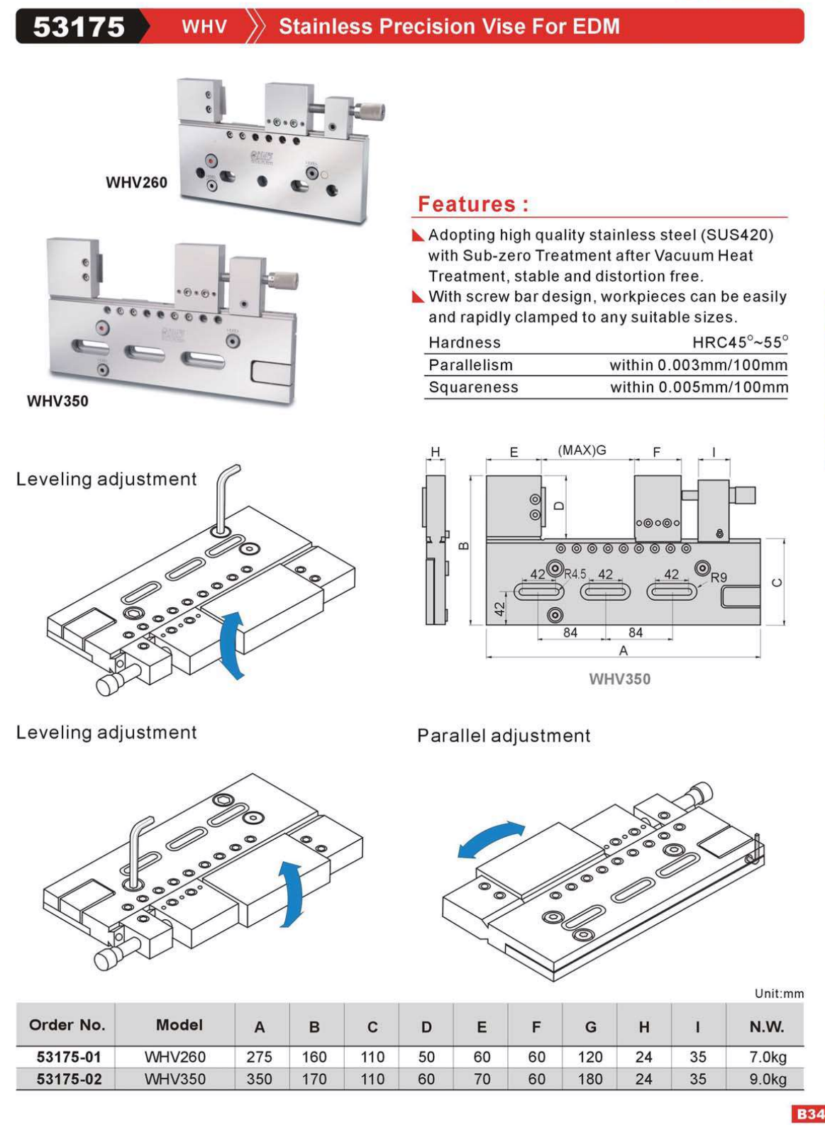 GinChan-53170/53175 WHV Stainless Precision Vise For EDM,China manufacturer