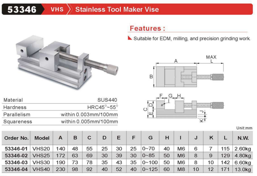 GinChan-53346 VHS Stainless Tool Maker Vise,China manufacturer