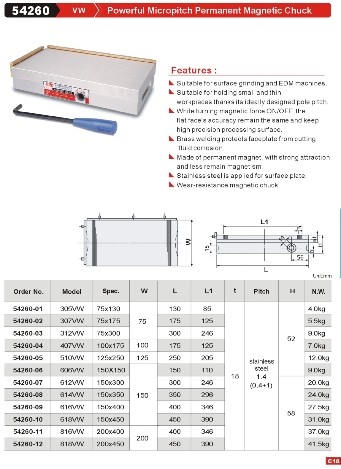 GinChan-54260 VW Powerful Micropitch Permanent Magnetic Chuck,China manufacturer