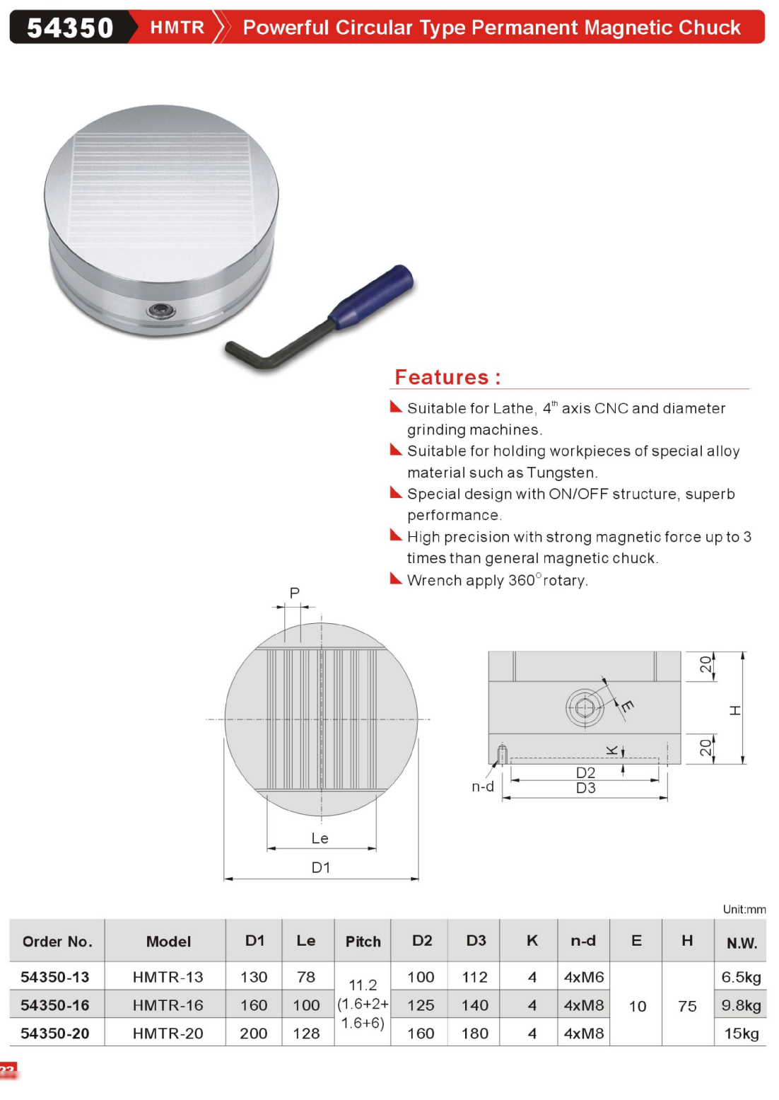 GinChan-54350 HMTR Powerful Circular Type Permanent Magnetic Chuck,China manufacturer