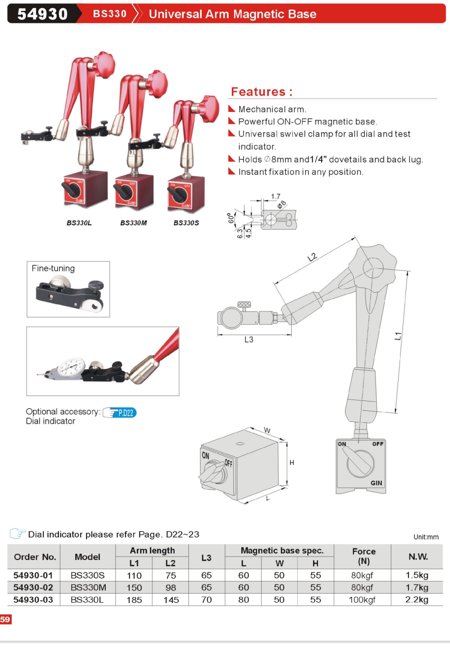 GinChan-54930 BS330 Universal Arm Magnetic Base,China manufacturer