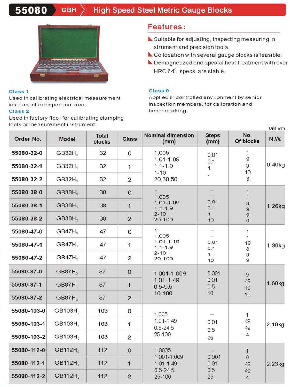 GinChan-55080 GBH High Speed Steel Metric Gauge Blocks,China manufacturer