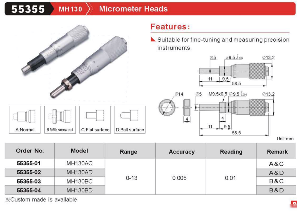 GinChan-55355 MH130 Micrometer Heads,China manufacturer