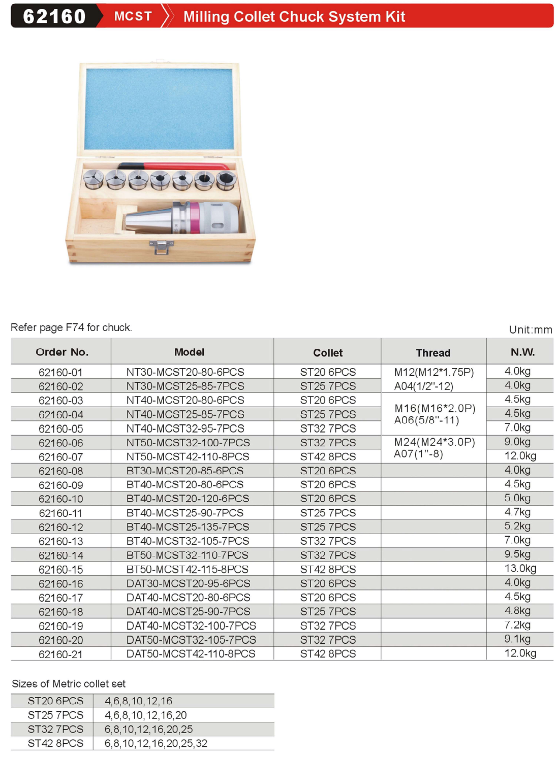 GinChan-62160 MCST Milling Collet Chuck System Kit,China manufacturer