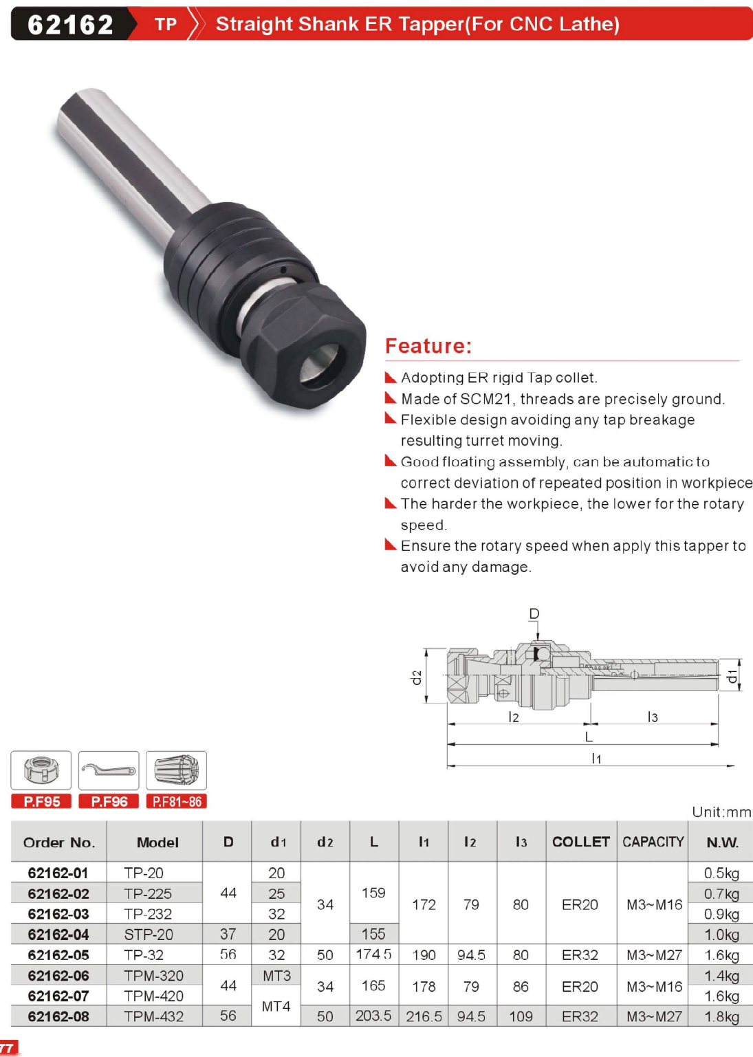 GinChan-62162 TP Straight Shank ER Tapper(For CNC Lathe),China manufacturer