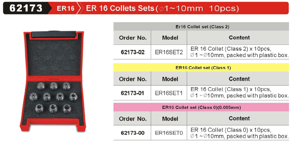 GinChan-62173 ER16 Collets Sets( diameter 1~10mm 10pcs),China manufacturer