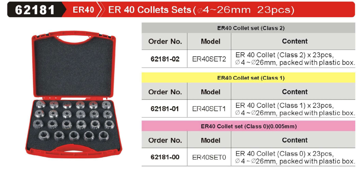 GinChan-62181 ER40 Collets Sets( diameter 4~26mm 23pcs),China manufacturer