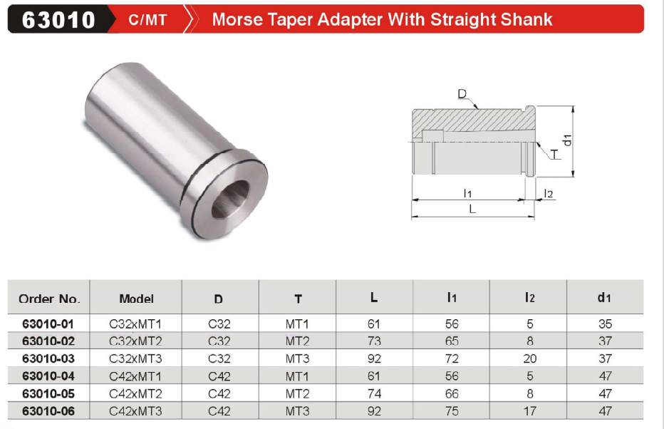 GinChan-63010 C/MT Morse Taper Adapter With Straight Shank,China manufacturer