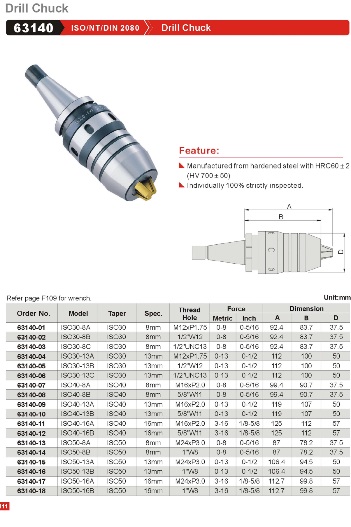 GinChan-63140 ISO/NT/DIN 2080 Drill Chuck,China manufacturer