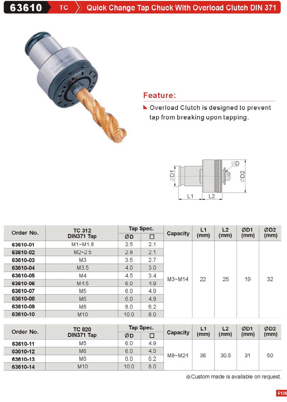 GinChan-63610 TC Quick Change Tap Chuck With overload Clutch DIN 371,China manufacturer