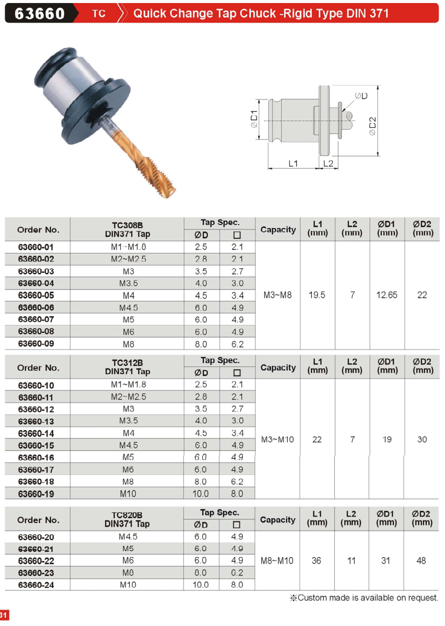 GinChan-63660 TC Quick change Tap Chuck -Rigid Type DlN 371,China manufacturer