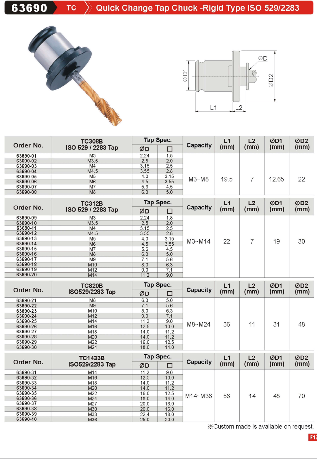 GinChan-63690 TC Quick Change Tap Chuck -Rigid Type lSO 529/2283,China manufacturer