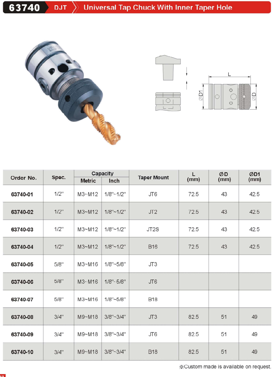GinChan-63740 DJT Universal Tap Chuck With Inner Taper Hole,China manufacturer