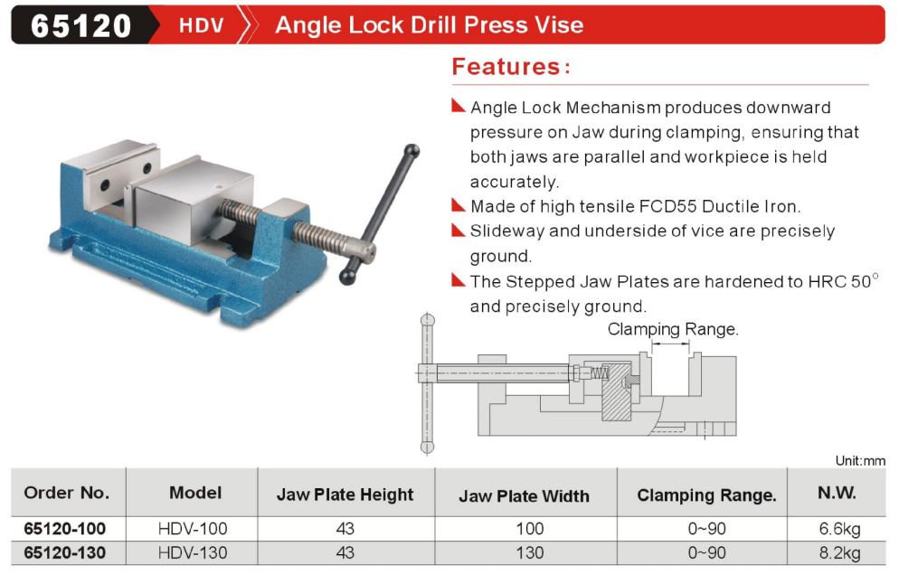 GinChan-65120 HDV Angle Lock Drill Press Vise,China manufacturer