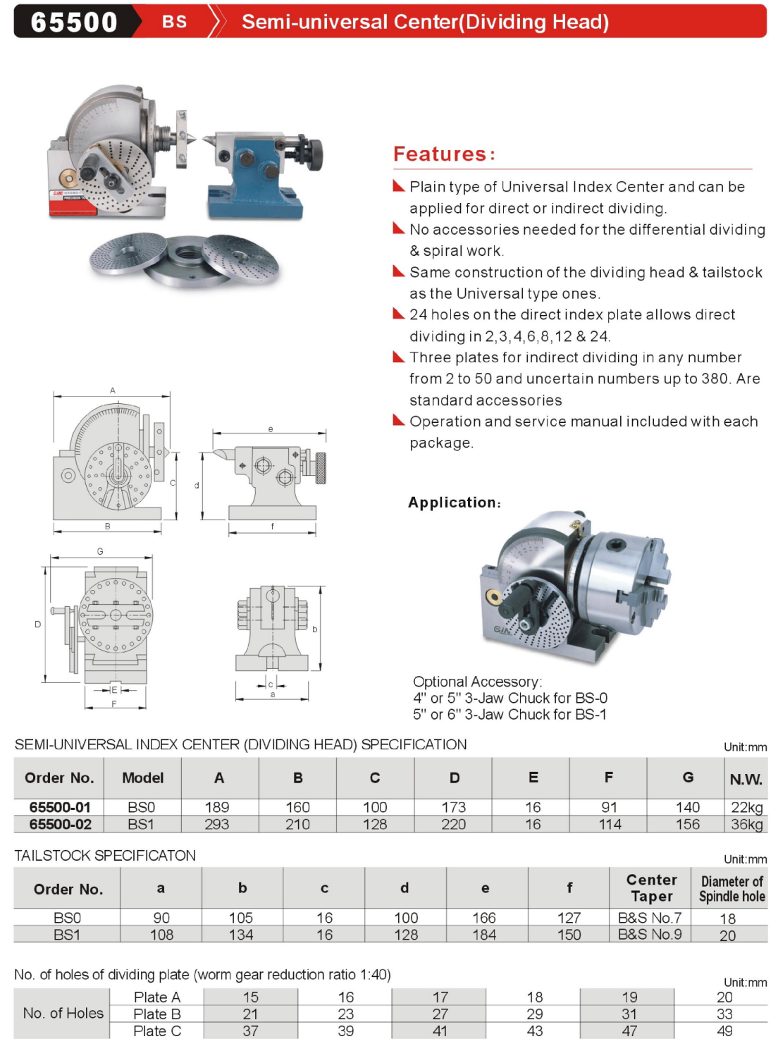 GinChan-65500 BS Semi-universal Center(Dividing Head),China manufacturer