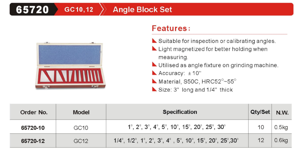 GinChan-65720 GC10,12 Angle Block Set,China manufacturer