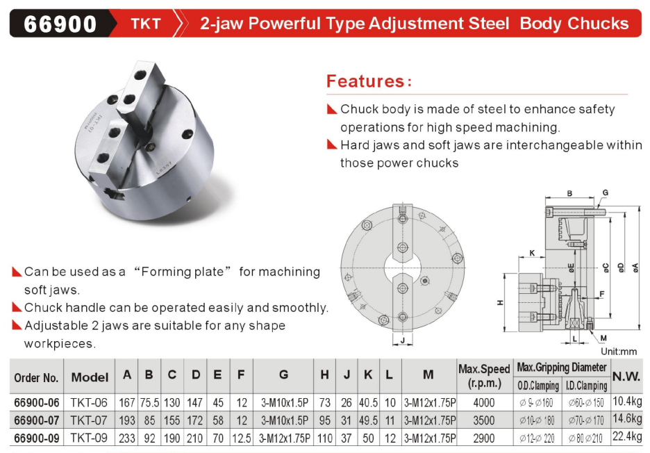 GinChan-66900 TKT 2-jaw Powerful Type Adjustment Steel Body Chucks,China manufacturer