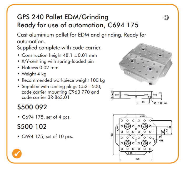 GPS 240 Pallet EDM/Grinding Ready for use of automation, C694 175,China manufacturer 3R EDM tooling system