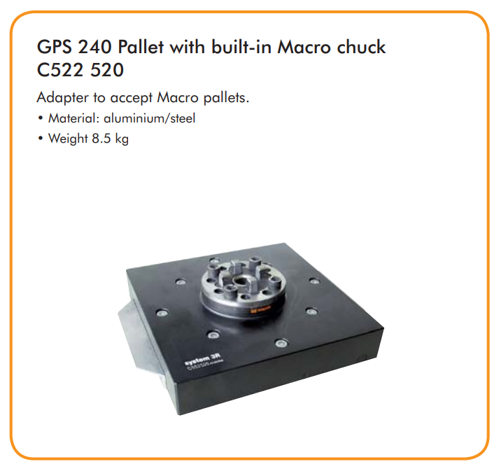 GPS 240 Pallet with built-in Macro chuck C522 520,China manufacturer 3R EDM tooling system