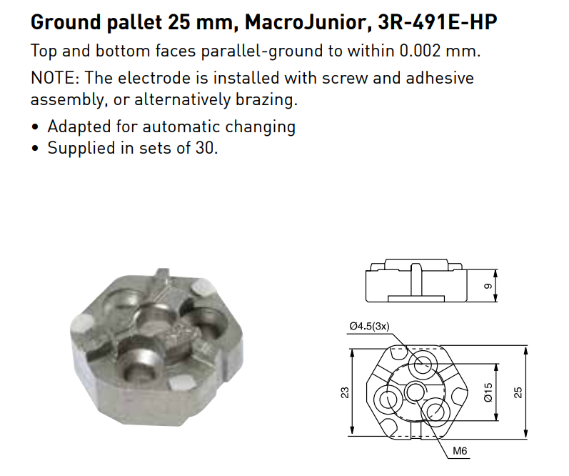 Ground pallet 25 mm, MacroJunior, 3R-491E-HP,China manufacturer 3R EDM tooling system
