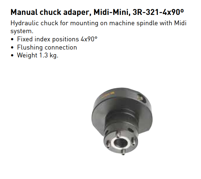 Manual chuck adaper, Midi-Mini, 3R-321-4x90o,China manufacturer 3R EDM tooling system