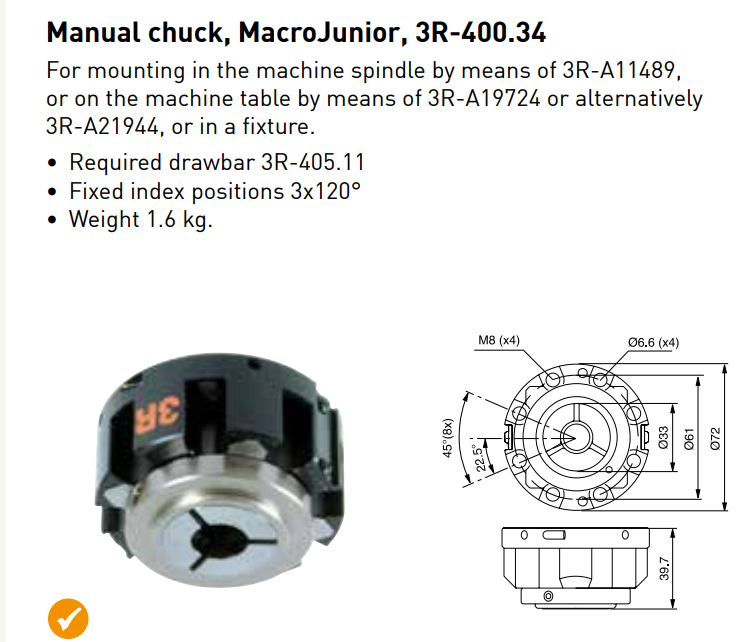 Manual chuck, MacroJunior, 3R-400.34,China manufacturer 3R EDM tooling system