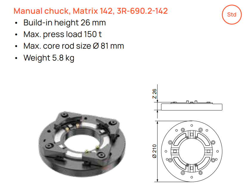 Manual chuck, Matrix 142, 3R-690.2-142,China manufacturer 3R WEDM tooling system