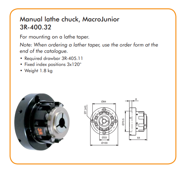 Manual lathe chuck, MacroJunior 3R-400.32,China manufacturer 3R EDM tooling system