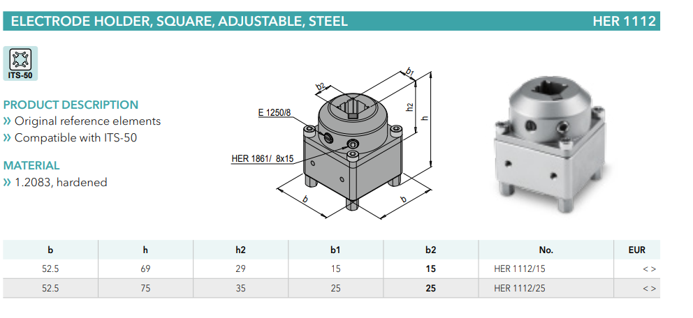 Meusburger HER1112 Electrode holder, square, adjustable, steel, mold tools China Manufacturer alternative
