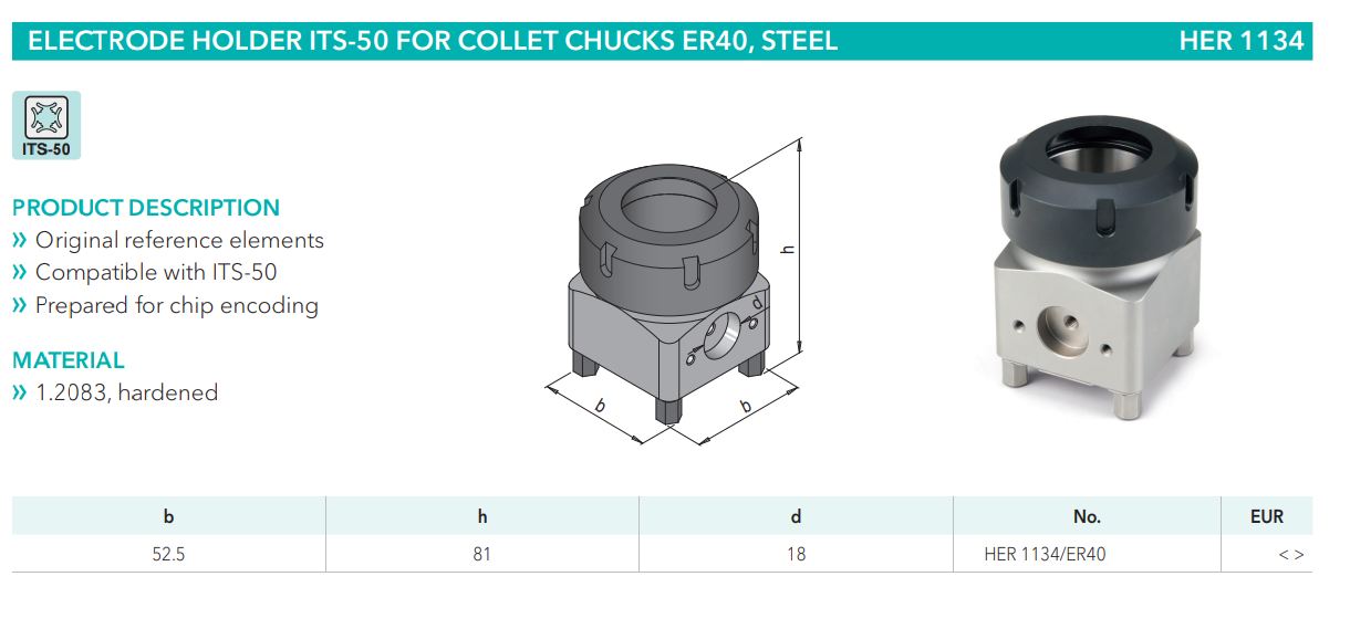 Meusburger HER1134 Electrode holder ITS-50 for collet chucks ER40, steel, mold tools China Manufacturer alternative