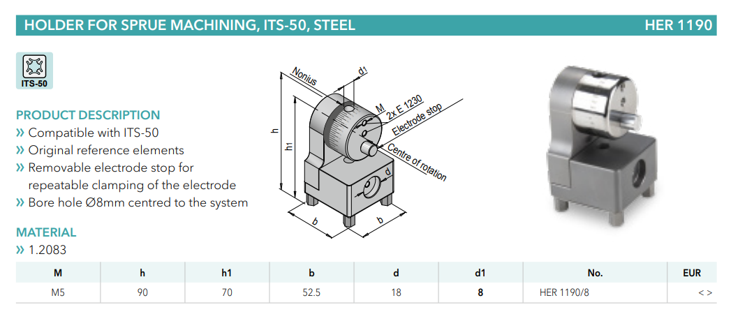 Meusburger HER1190 Holder for sprue machining, ITS-50, steel, mold tools China Manufacturer alternative