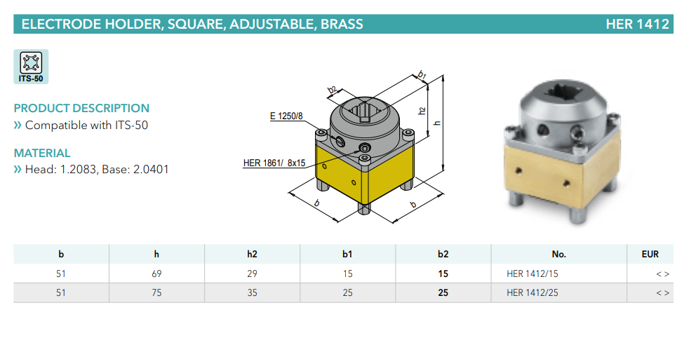 Meusburger HER1412 Electrode holder, square, adjustable, brass, mold tools China Manufacturer alternative