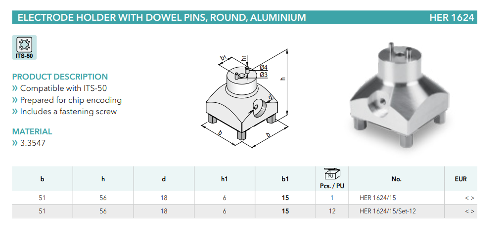 Meusburger HER1624 Electrode holder with dowel pins, round, aluminium, mold tools China Manufacturer alternative