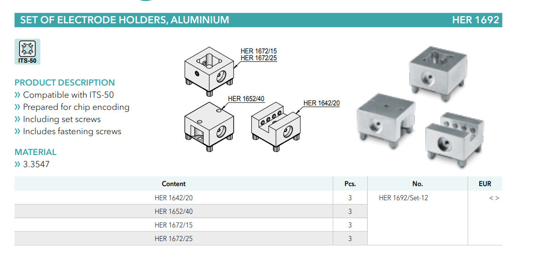 Meusburger HER1692 Set of electrode holders, aluminium, mold tools China Manufacturer alternative