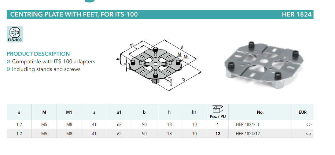 Meusburger HER1824 Centring plate with feet, for ITS-100, mold tools China Manufacturer alternative