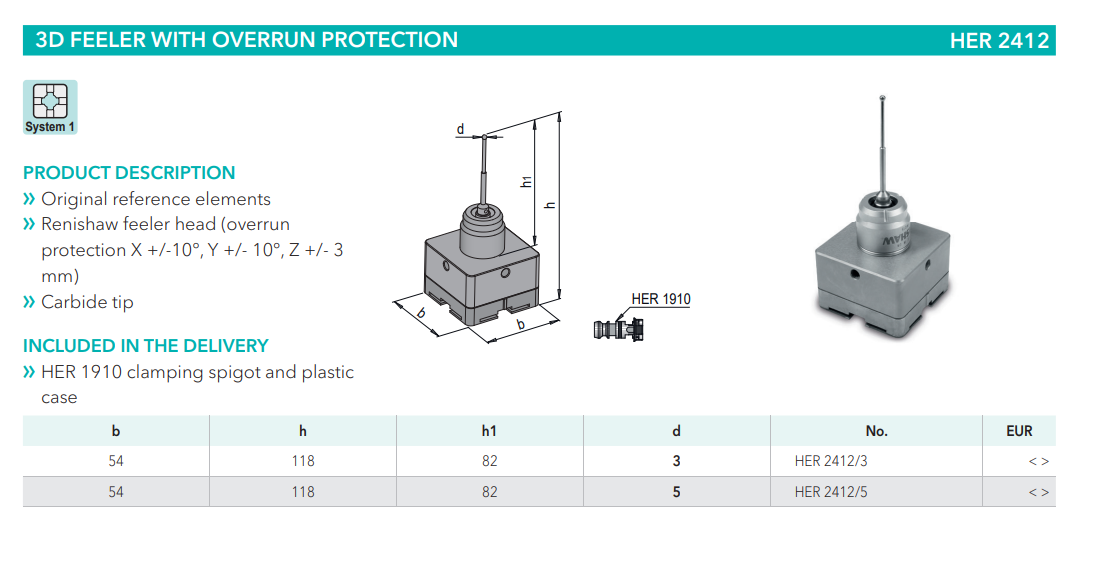 Meusburger HER2412 3D feeler with overrun protection, mold tools China Manufacturer alternative