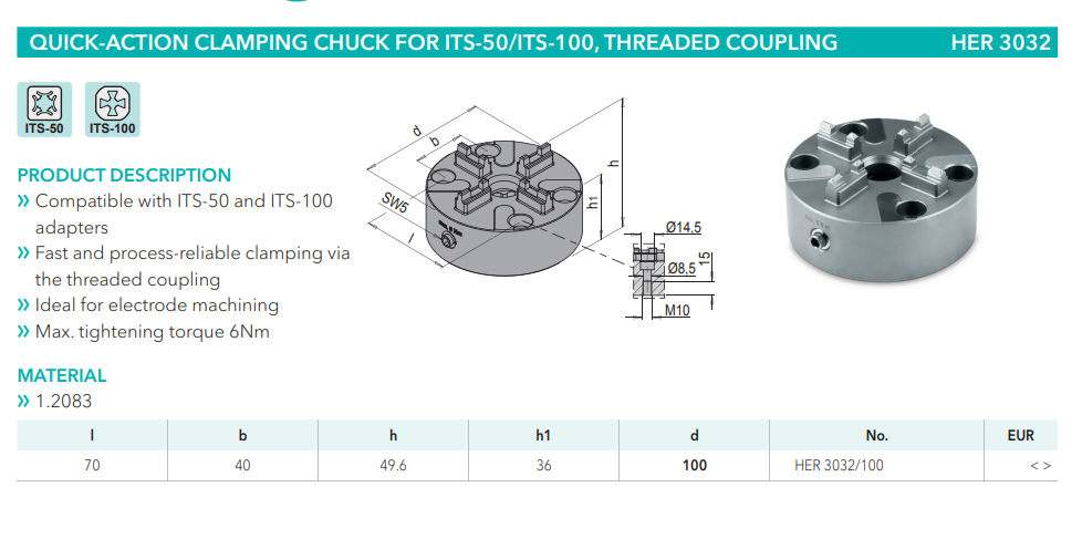 Meusburger HER3032 Quick-action clamping chuck for ITS-50/ITS-100, threaded coupling, mold tools China Manufacturer alternative