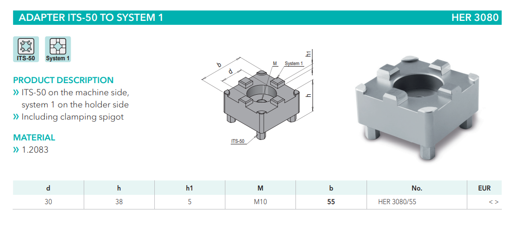 Meusburger HER3080 Adapter ITS-50 to system 1, mold tools China Manufacturer alternative