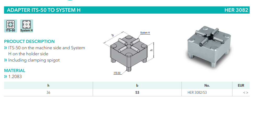 Meusburger HER3082 Adapter ITS-50 to system H, mold tools China Manufacturer alternative